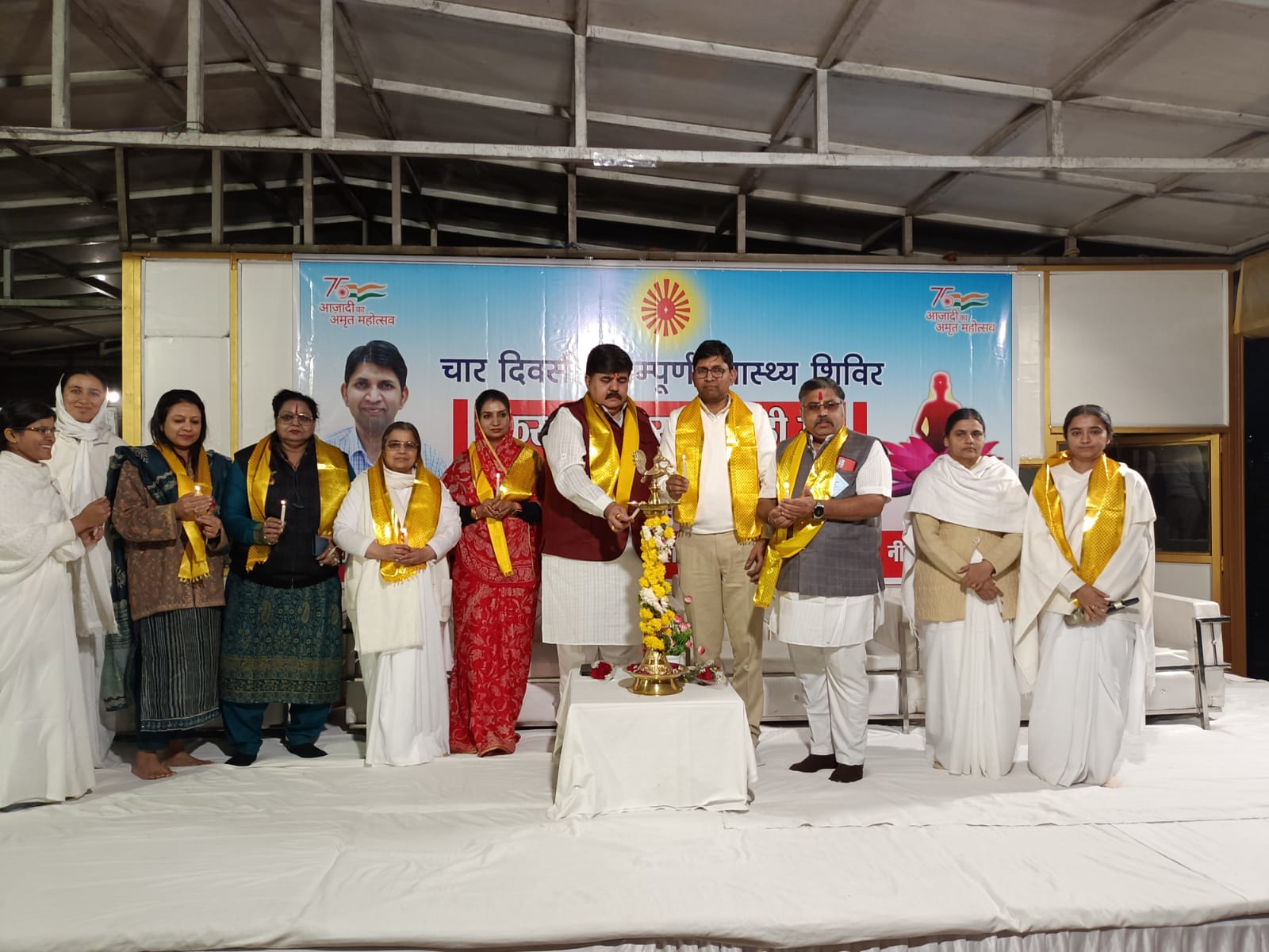 वर्तमान समय में कोरोना महामारी का आवाज फिर से सुनाई देने लगा है। ऐसे समय में अपने स्वास्थ्य को ठीक रखना और संपूर्ण रीति से स्वस्थ रहना यह बहुत आवश्यक हो गया है। केवल शारीरिक ही नहीं , वरन मानसिक और आध्यात्मिक स्वास्थ्य भी हर व्यक्ति के लिए जरूरी हो गया है। यही बात कोरो ना ने हमें सिखाई है। और इसीलिए बिना दवाई के स्वस्थ रहने का तरीका सिखाने वाले ऐसे आयोजन यह समय की मांग है। मैं सभी भोपाल निवासियों से यह करबद्ध निवेदन करता हूं किसका ज्यादा से ज्यादा लाभ ले। ब्रह्माकुमारीज के समाज उपयोगी उपक्रम मैं काफी लंबे समय से देखता आ रहा हूं। यह कहना था बीजेपी के प्रदेश प्रवक्ता दुर्गेश केसवानी जी का और मौका था मेरी गोल्ड गार्डन में आयोजित चार दिवसीय संपूर्ण स्वास्थ्य शिविर के शुभारंभ का। उद्घाटन के इस कार्यक्रम में मनोज कुमार वर्मा (अध्यक्ष संस्कृत महाविद्यालय एवं विजयनगर समिति), प्रियंका मिश्रा (पार्षद वार्ड क्रमांक 7), रुचि अग्रवाल (प्रोपराइटर, मेरीगोल्ड गार्डन), बीके ज्योति दीदी (ब्रह्माकुमारीज़, पंचवटी) आदि ने भी कार्यक्रम के प्रति अपनी शुभकामनाएं व्यक्त की। शिविर के संचालक डॉ दिलीप नलगे ने कहा,’वर्तमान समय में स्वास्थ्य संबंधी समस्याएं बढ़ती जा रही है। इसलिए बिना दवाई के स्वस्थ रहने की कला सीखना आवश्यक हो गया है। अगर हम आहार को दवाई की तरह खाना सीख जाते हैं तो हमें दवाइयों को आहार की तरह खाने की नौबत जीवन में नहीं आएगी। सुबह का नाश्ता राजा जैसा, दोपहर का भोजन मध्यम व्यक्ति की तरह और रात को भिखारी की तरह खाना चाहिए। भूख के अनुसार खाना चाहिए,न कि आदत के अनुसार। अपनी प्रकृति को समझ कर उस अनुसार आहार की मात्रा तय करना स्वस्थ रहने में मदद करता है। आयुर्वेद के अनुसार हमारा आहार षड-रसात्मक होना चाहिए। आहार में रेशें ज्यादा मात्रा में होने चाहिए जिससे पेट साफ रहेगा। पेट सफा तो हर रोग दफा। आगामी 3 दिनों में शरीर के लिए उपयुक्त व्यायाम, सकारात्मक विचार, दिनचर्या, ऋतुचर्या तथा राजयोग मेडिटेशन और स्वास्थ्य प्राप्ति इन विषयों की गहन जानकारी प्रदान की जाएगी। प्रातः 7:00 से 8:30 तथा शाम 6:00 से 7:30 इन में से अपनी सुविधा अनुसार किसी एक समय पर आकर इसका निःशुल्क लाभ ले सकते हैं। अंत में बीके डॉक्टर प्रियंका ने सभी को राजयोग ध्यान के माध्यम से रिलैक्सेशन का अनुभव कराया। कार्यक्रम का कुशल सूत्रसंचालन बीके हेमा ने किया।
